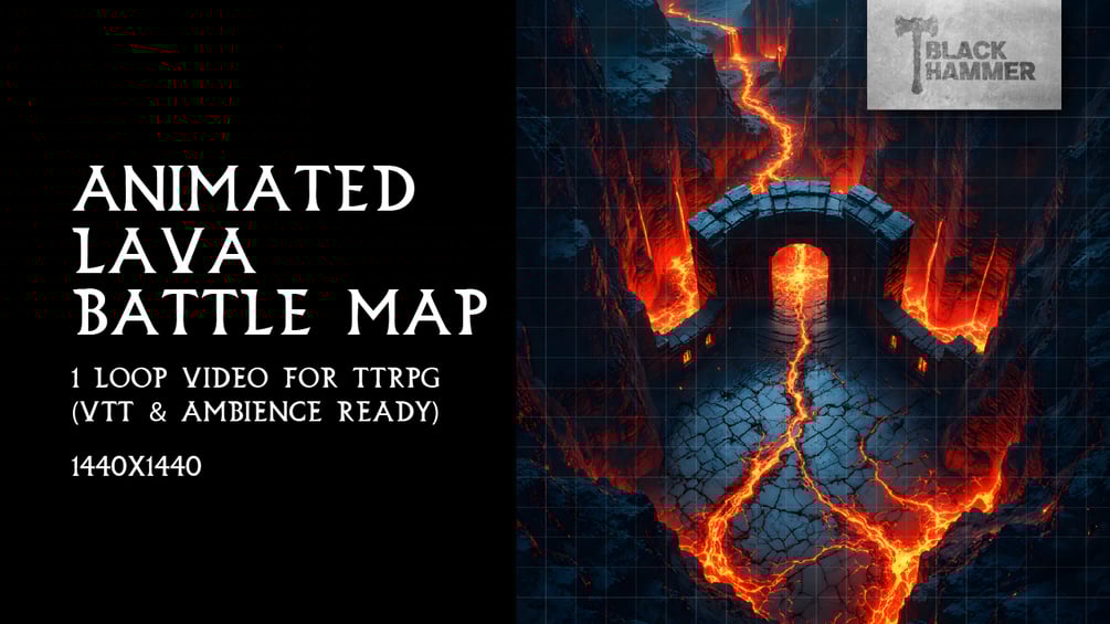 Add cinematic depth to your tabletop RPG sessions with this animated lava battle map – a high-quality looped video that brings your encounters to life without distracting from gameplay.